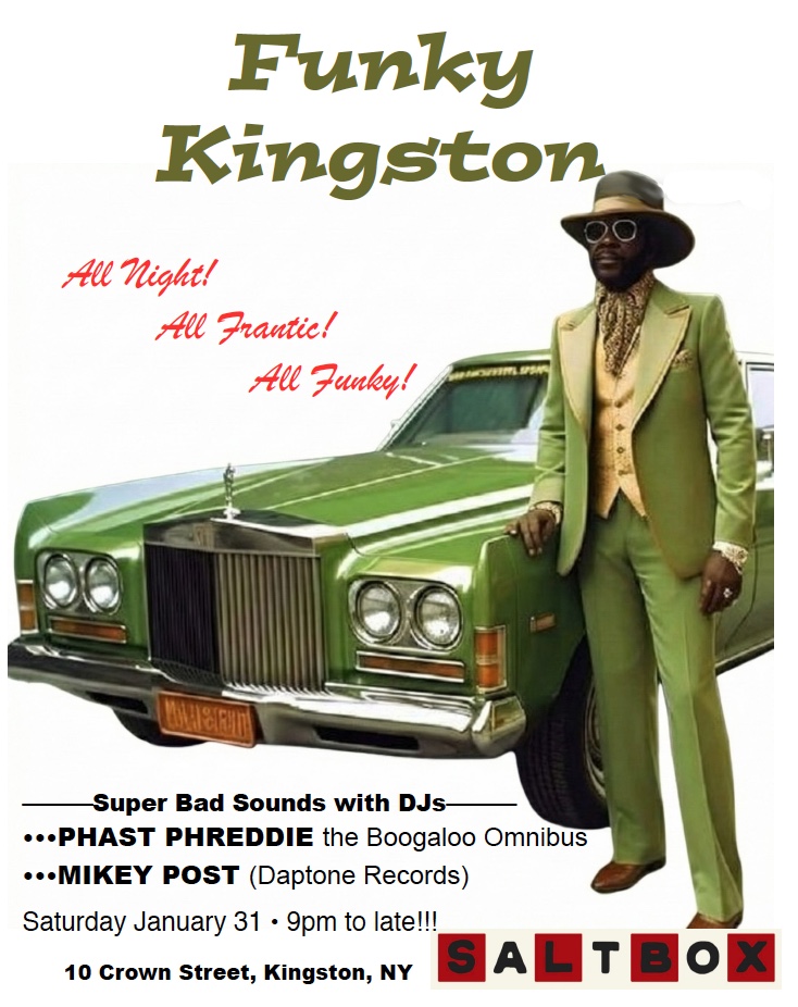January 31 was the fifth Saturday of the month. That means it was Funky Kingston night, and so, Funky Kingston rolled into the venerable Salt Box with much fanfare. This actually marked the last time the Funky Kingston will be held on a fifth Saturday. Going forward, the Funky Kingston will now be held on every other third Saturday night, starting in March. It will be alternating third Saturdays with Pete Pop’s new concoction, Shingaling Boogaloo—an evening of jumping around to exotic, Afro-Cuban rhythms and other hot stuff from south of the border.