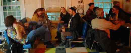 The place was packed most of the night. Miss Nancy brought brownies and chex mix. The adjacent food truck was in full operation (the cold weather had it literally steaming!) and the Phast Man partook in its excellent French fries.