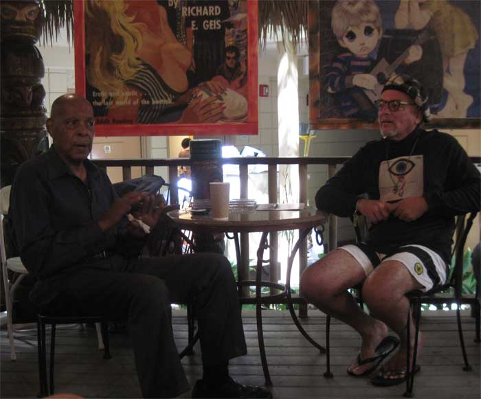 With the beatnik theme this year—officially Beat Tiki—Phast Phreddie’s poetry-with-a-beat group of the late eighties Phast ‘n’ Bulbous was asked to reform and perform. Phast has been to Tiki Oasis several times and often DJ’s, too—and it is always a gas. However, since he was scheduled to perform with Phast ‘n’ Bulbous, thus having to schlep his semi-trusty, getting’ rusty C-melody saxophone all the way to San Diego, he really didn’t want to have to lug around a box of old 45s, too. So he initially balked when Otto asked him to DJ the party at the Bali Hai Restaurant—a swingin’ tiki-themed eatery on Shelter Island in San Diego—on the first night of Tiki Oasis. Otto was insistent, though and suggested that he bring some of his own records for the Phastman to DJ with. Well, who can refuse that—certainly not Phast Phreddie!