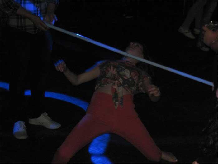 The beatnik theme necessitated the inclusion of like-themed records, and records containing bongos; also, jazz records: bebop, modern and mod. It is largely the latter style that got the excitable tiki folk dancing and carrying on. Among Otto’s records that the Phastman played were those by Herbie Mann, Les Baxter, Dave Brubeck and a few others that have been lost in the brain freeze caused by a virgin peña colada. One of the highlights of the evening was a gang of folk in a rumba line, kickin’ it up to “La Burbuja” by Leticia Estrada, a cumbia-flavored version of the theme to “The Blob!”