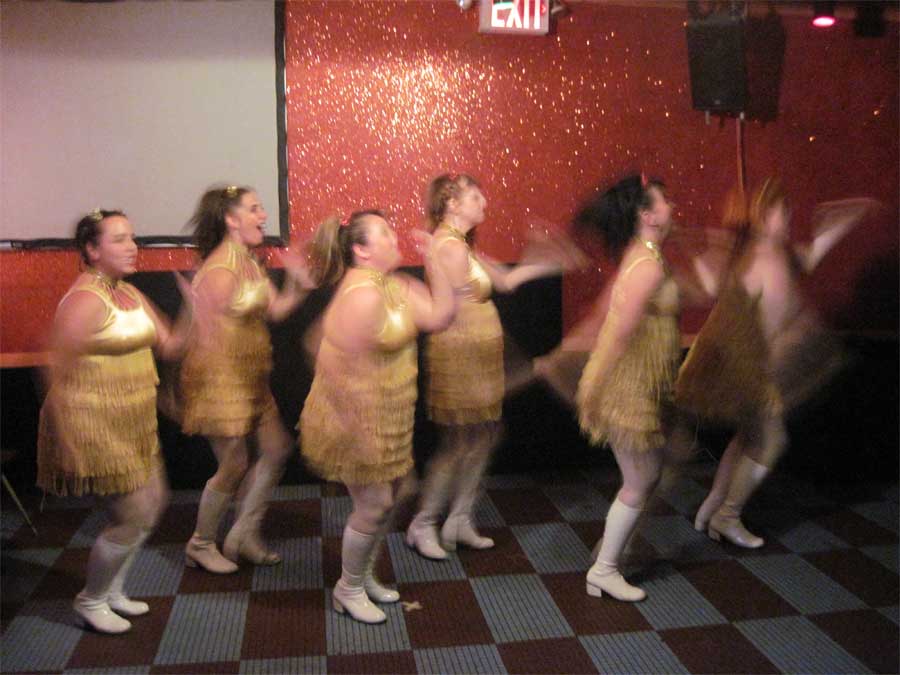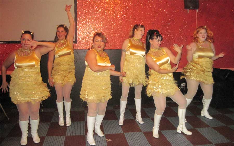 The gals invaded New York City for four days in September, starting with their Dance Party Au Go-Go—a meet and greet and watusi event at the Beauty Bar in Manhattan on Thursday the 25th. A couple of boss DJs were required, so The Devil-Ettes enlisted the bossest: Rex Doane, whose Saturday afternoon radio show—Fool’s Paradise on WFMU—is the greatest two hours of sonic mayhem imaginable. Rex played a number of hot frantic tracks—the kind that made him famous. Also on hand was Phast Phreddie the Boogaloo Omnibus, who supplied a solid Sixties Go-Go beat. At various appropriate times, The Devil-Ettes performed some of their spectacular routines. Can you spell S-W-I-M?
