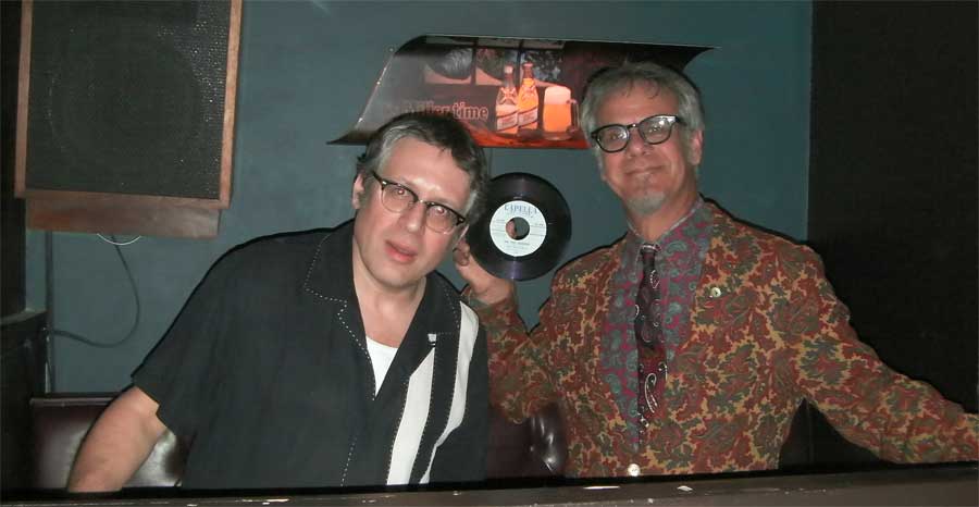 Phast Phreddie the Boogaloo Omnibus and Lenny Kaye goof at the Doo Wop Hop! Photo by Nancy “Jeannie” Gardner.