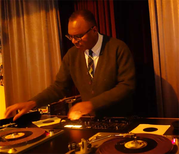 The first DYNAGROOVE guest DJ was Girlsoul, who played sixty minutes of superb sweet soul music. Other DJs included Mr. Vacation, Ol’ Stark, One Mint Julep, Peanut Butter Brown, DJ Ratta, Friar Popwell, Selector Bunny Punch, DJ Shakey, Avi Spivak, Neal Sugarman, Greg Tormo, Carlos Tropicaza and DJ Xerox. Occasionally there was a theme, such as the Doo Wop Hop that featured Lenny Kaye, or the Blues nights that featured Mr. Fine Wine, Eli “Paperboy” Reed or Brian “Daddy Long Legs” Hurd. Sheila B was on hand for a couple all-female artists nights. Lenny Kaye and Mr. Fine Wine were also involved in all-instrumental nights (one of which was memorable for the appearance of DJ Miss Sepia Tone), and the New Orleans R&B Mardi Gras night with Mr. Fine Wine will go down in history, as it was the impetus of a famous record trade.