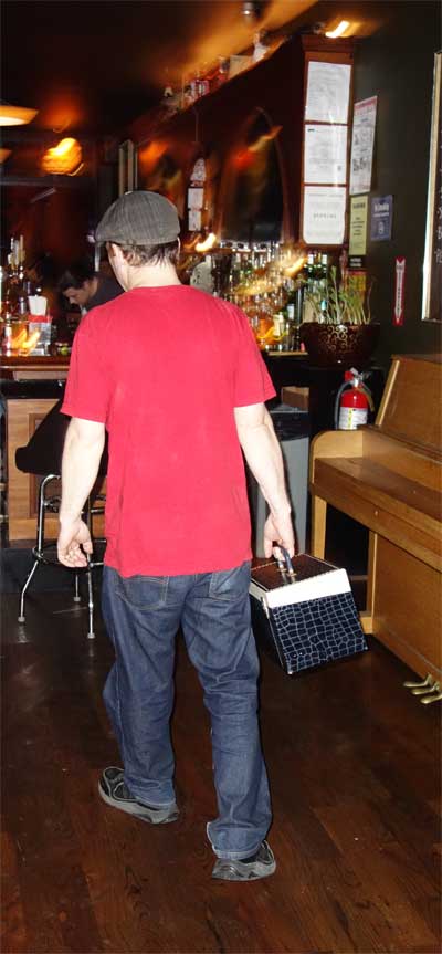 Mr. Funk is from Boston, where he hosted two fabulous dance nights: Cheap Thrills a’ Go-Go—a montly sex-a-dellic Go-Go party that the Boog once guest DJed at—and the Mambo Beat Club—a bi-weekly soul music event. He now lives in Brooklyn where a few years ago he started the Brooklyn Soul Club, which is currently on hiatus while Moses Funk develops some sort of scientific turntablist project. For Out of Sight, Moses Funk came armed with a box of old soul 45s and he played the hell out of them, too!!