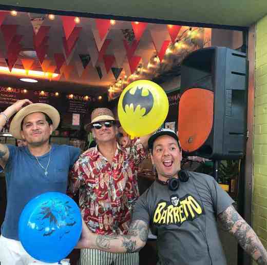 For the last several years, our pal DJ Rata has been hosting fabulous parties at Rockaway Beach on certain select Sundays during the summer. Called Shake It Up Sunday, it takes place at Caracas, an open-air Venezuelan restaurant located along the boardwalk at the beach (the coconut smoothie is godhead!). The place has a huge patio, and that’s where the festivities took place on June 25. The date was close enough to Rata’s birthday (the 29th) that it was celebrated, too. Since Rata is a big Batman fan, Phast Phreddie the Boogaloo Omnibus (who was invited to play a few rekkids) and Boogaloo Bag photographer Nancy Jeannie Gardner surprised him with a batch of Batman cupcakes, Batman napkins and Batman balloons. Oh, did we mention that The Boog wore his Batman socks?