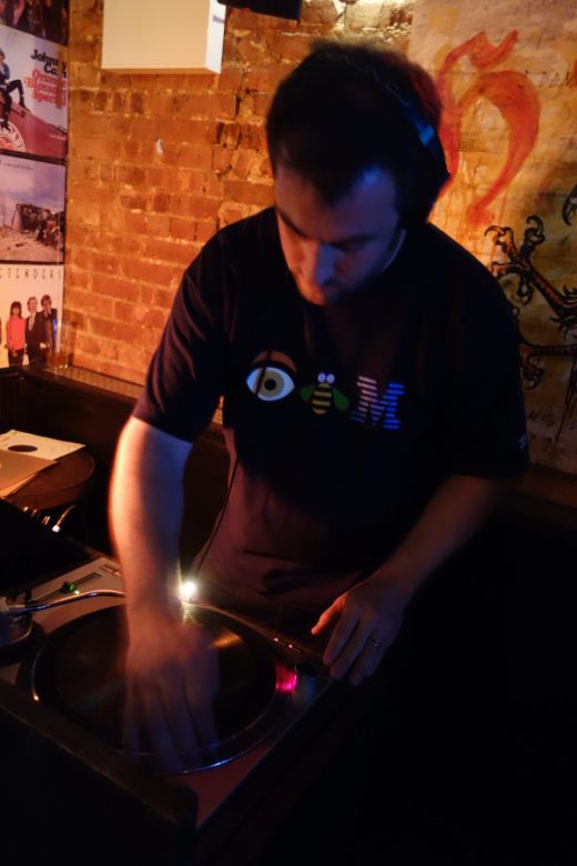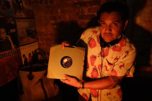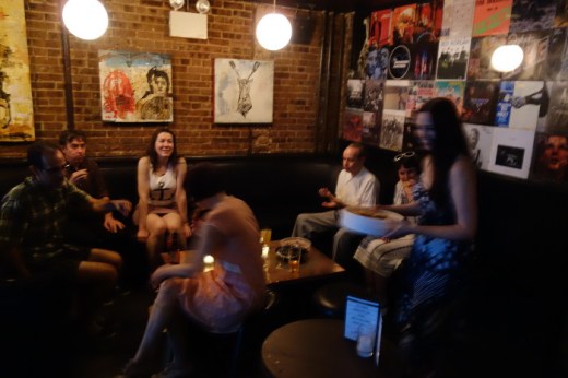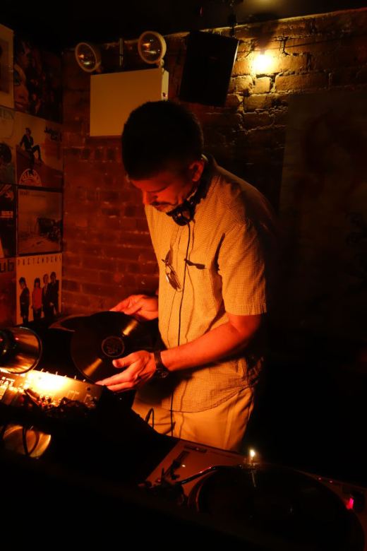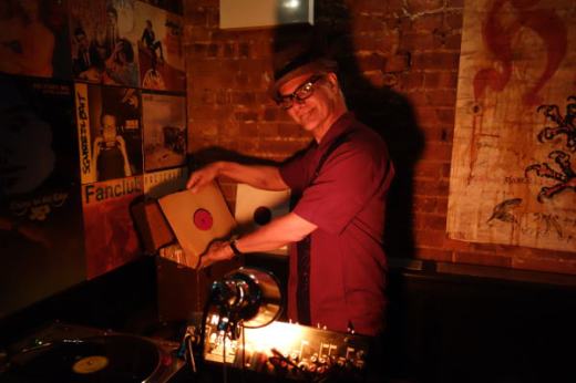 Very often, mid-summer events are attended very poorly–due to folks going on vacation; folks not wanting to deal with the heat; too many other things to do. Not so for the BIG TEN INCH, held on July 30 at the Hi-Fi Bar in the East Village of Manhattan. There was a lovely crowd of folks, old friends and new, who came to dig the spinning shellack discs. Everybody had a great time, diggin’ the old noise, eating pizza and man, those chocolate chip cookies that Boogaloo Bag photographer Nancy “Jeannie” Gardner made were super yummy! She even went so far as to bake some gluten-free brownies for one of the regulars, who has a health issue with that sort of thing. It was really incredible of her to be so thoughtful. How many other DJ nights can boast such hospitality? Folks, if you are not making it to the BIG TEN INCH, you are not making it anywhere!!