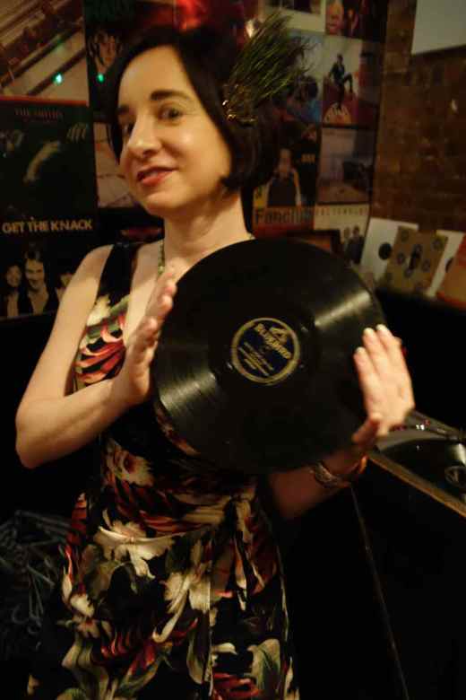 New comer DJ Becky G brought one 78–but it was a good one! A Jimmy Lunceford on Bluebird with “Jazznocracy” on one side and the legendary “White Heat” on the other. It swung like crazy. The Upsetter was selling some mambo 78s and Becky G bought a few of them, so we expect her to spin more Cuban rhythms at the next BIG TEN INCH.