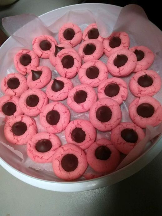 Miss Nancy Gardner made some strawberry/chocolate cake cookies that went over quite well. The base of the cookie was of a pink strawberry flavor that folks all agreed tasted like Captain Crunch Berries and it was topped off with a dark chocolate kiss.
