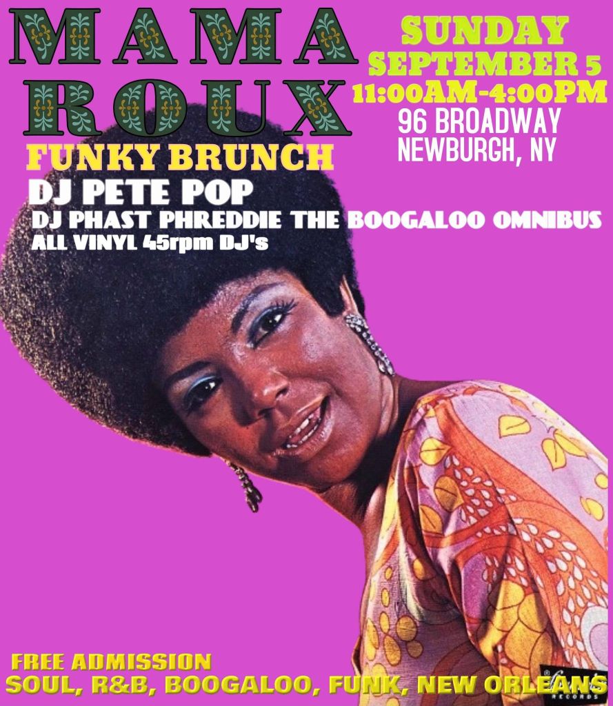 For the last several weeks, The Funky Brunch has been so successful at Mama Roux, the New Orleans-themed restaurant in Newburgh, NY, that it looks like it will continue indefinitely. DJ Pete Pop as been holding down the fort with his boss tunes and Mama’s clientele appear to enjoy the scene immensely. Mr. Pop invited Phast Phreddie the Boogaloo Omnibus for a return visit on Sunday September 5 and in spite of the threatening rain—which was really only a sprinkle now and then—it went really well.