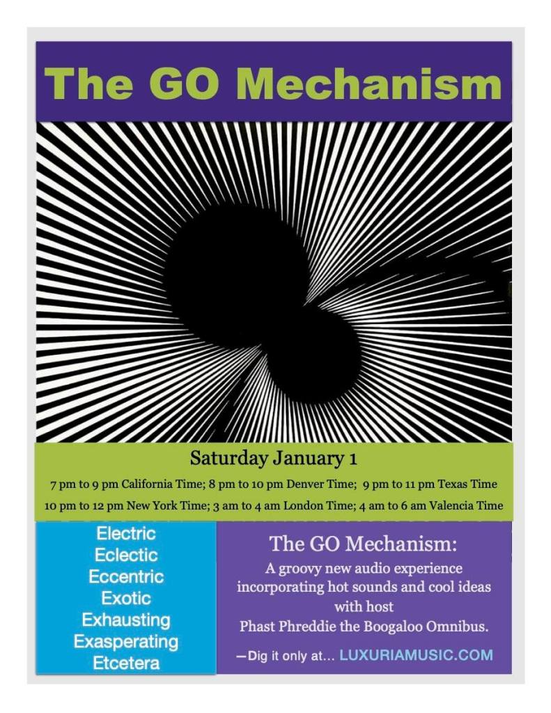 Thank you for starting your new year listening to The GO Mechanism. Number 5 will be aired on January 1, 2022 on Luxuria Music’s music streaming website. Here are notes on some of the songs: