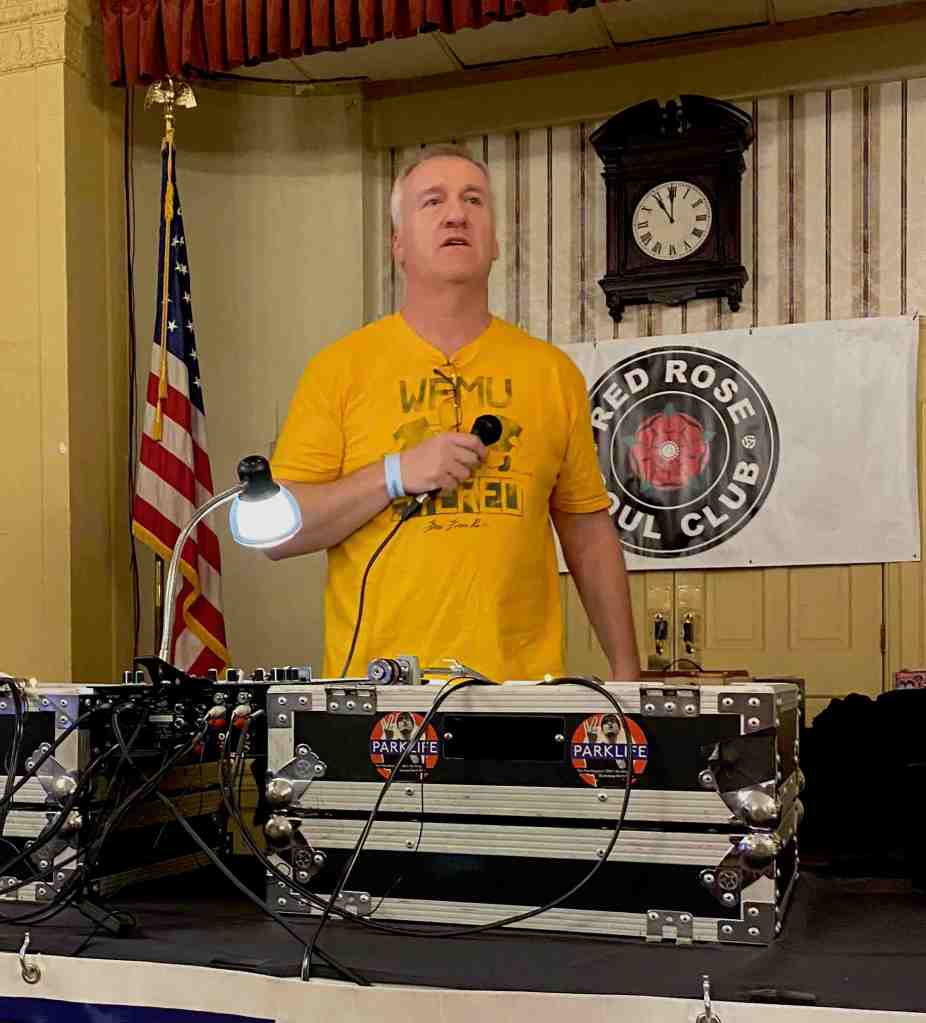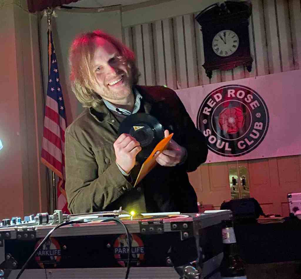 This year, there were two newcomers: Patrick Foisy and Marty Emanuel—both travelled from Canada. Mr. Foisy, known as Parka Pat due to his Mod leanings, brought his own pre-recorded introduction on a 45 RPM record. In Montreal he swings a boss dance party called With It. He was supposed to attend last year’s event but was held back by mean covid restrictions. Mr. Emanuel was born in South Africa but now lives in Winnipeg were he is known as Mod Marty and produces the On Target podcast.