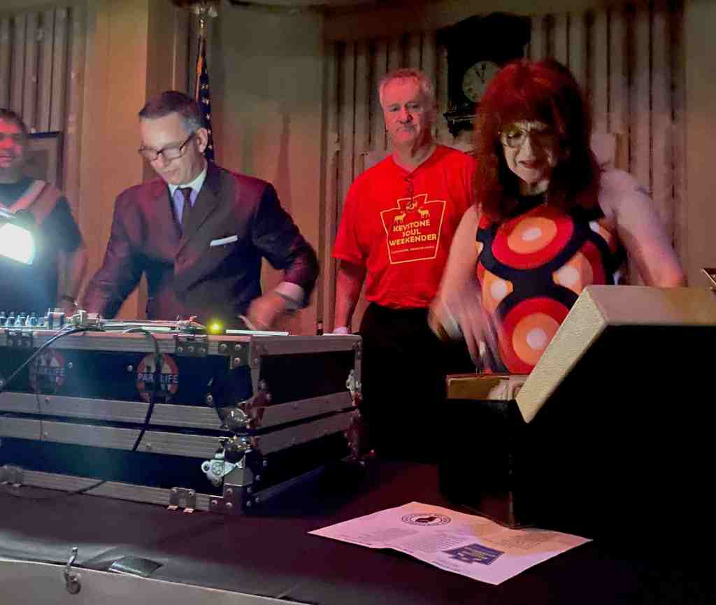 Among the DJs who have previously swung at the Keystone State Soul Weekender are Vincent Ebb (known as The Soul Chef, he’s a Baltimore cat now living in Texas); Tony Chackal (a philosophy professor at a university in Georgia); Jay Boxcar (Garden State Soul Club); the tag-team of Chas Gibson & Ivy A’ Go-Go (New Paltz, NY); Paula Carrillo and George Rodriguez (both of Minneapolis); Mikey Post (Daptone Records, NY); Cher Gingras (Slow Fizz, Toronto); Eric Svirida and Yana Lil’ Jerk (both of the New York City Soul Dance Squad); Richard Sibello (Top Shelf Oldies, NJ); Al Aitchison and Connie T. Empress (both of Soul Finger, NYC); Scott Boyko (Hanover, PA); Chey Frazier (Easton, PA); and let’s not forget our wonderful hosts, Julio Fernandez (Red Rose Soul Club, Lancaster) and David Raistrick (Tamla Coffee Bar & Record Shop, Skegness, England). Every DJ presented excellent records and the dance floor was busy the entire time. Brother Weems was the M.C., as he has been for several years now, and he does a bang-up job of it, too.