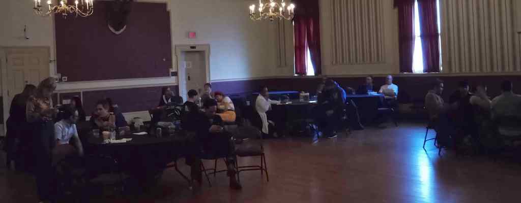 In previous years, the Sunday Soul Brunch was held downstairs in the Elks Lodge diner. However, this year the Lodge failed to hire a chef, so the brunch was held upstairs. Extra tables were set up and folks brought their own grub. Luckily, there is a good coffee shop a short way down the street where folks could get some snacks.