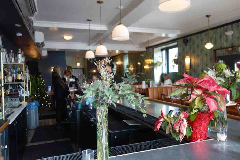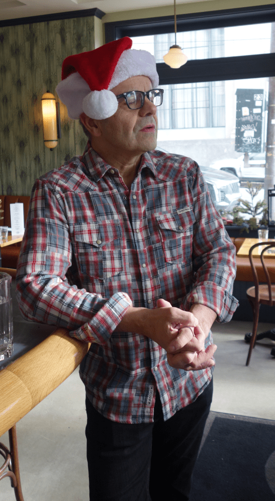 Pete called the night the Rockin’ Holiday Hop—and it absolutely rocked. DJ Nina Day was on hand to play a few records from time to time. Her alter ego Sheba Shake occasionally appeared on the stage to go-go dance. DJ Pete Pop played some fantastic records. Miss Nancy baked two kinds of cookies that were coated with powdered sugar (chocolate crinkles and pfeffernusse), plus her signature vegan brownies. Folks were dancing and carrying on all night.