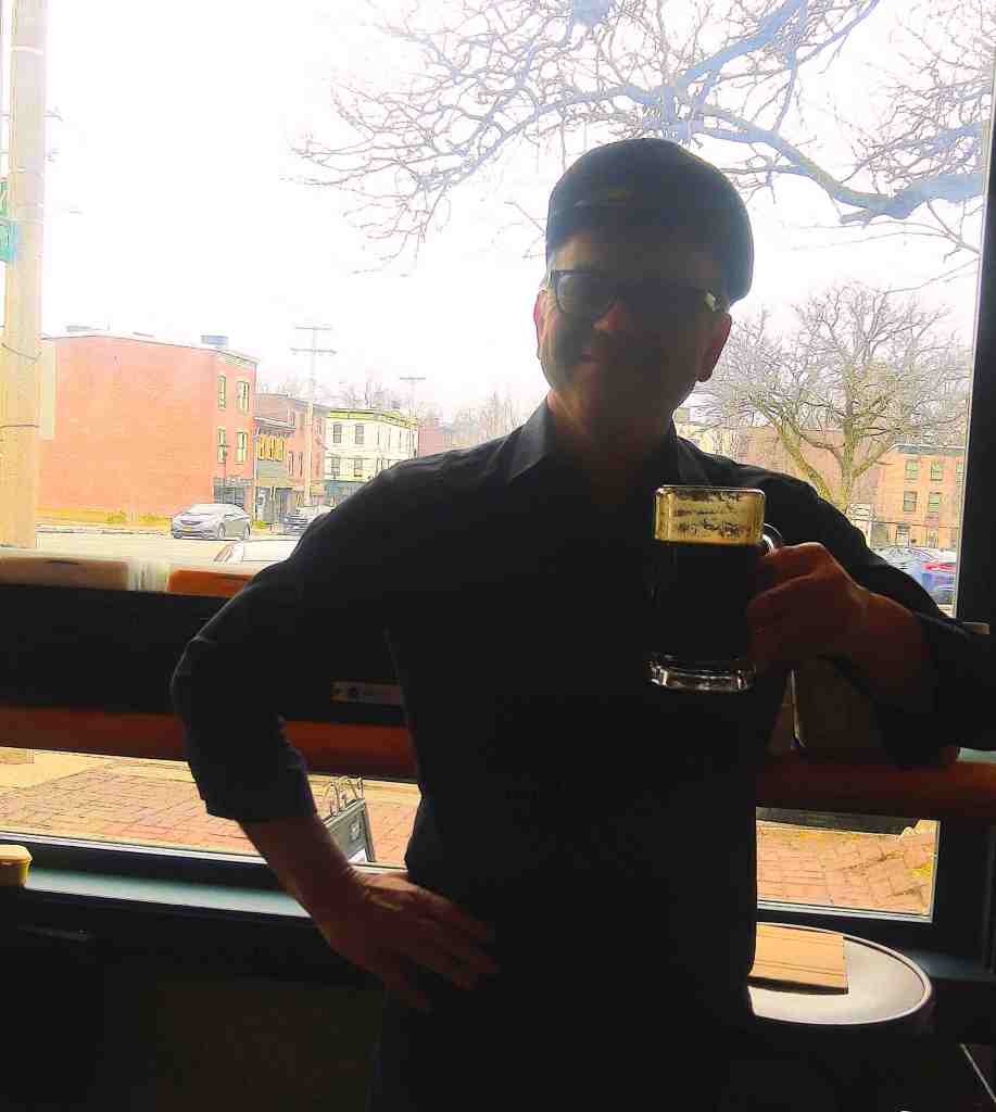 DJ Pete Pop swings at the Funky BrunchDJ Pete Pop hoists a brew at the Funky Brunch