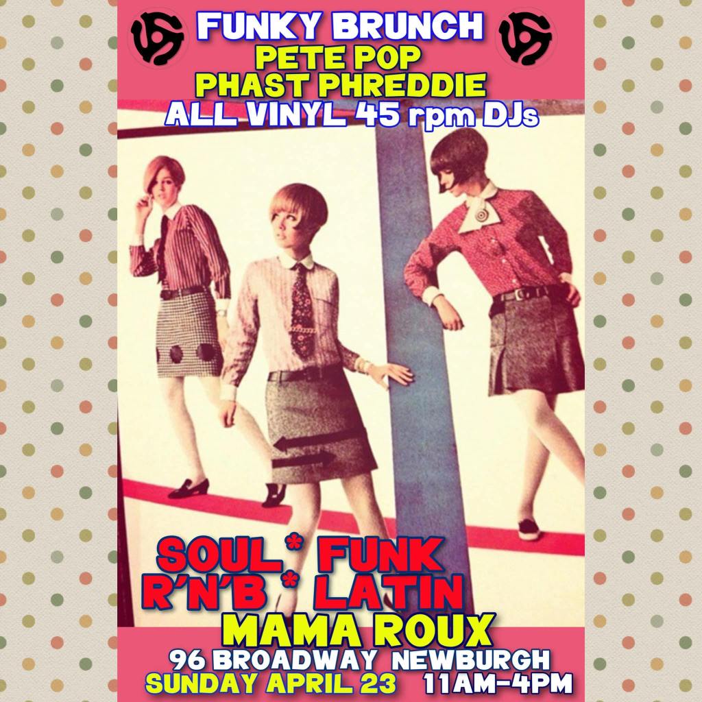 T.S. Elliot once wrote, “April is the cruelest month…” Here at the Boogaloo Bag we beg to differ. To us, April is the coolest month! For four April Sundays in a row, Phast Phreddie the Boogaloo Omnibus was asked to DJ the Funky Brunch with (or once, without) DJ Pete Pop at the elegant Mama Roux in downtown Newburgh.