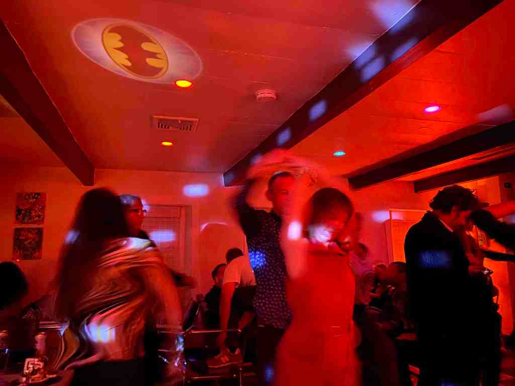 Due to the rain earlier in the evening, there was a fear that attendance would be low. However, there were plenty of folks on hand and the evening was enhanced when several of our friends showed up. Also, Jet Set was decked out with all sorts of ghouls and goblins hung on the walls. it was a totally festive occasion, made even more festive with the swingin’ baked goods of Miss Nancy: Martian fudge and vegan brownies!