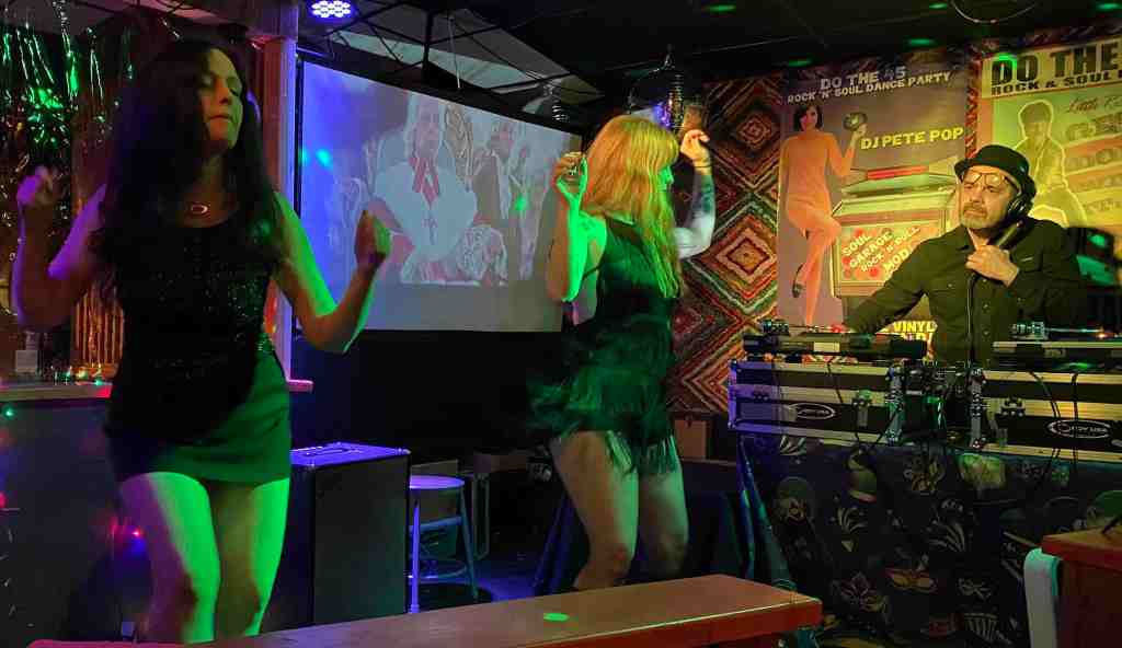 The first Do The 45! of the new year took place on January 12 at Quinn’s—the rock ’n’ ramen joint in Beacon, NY. This was an especially exciting Do The 45! because host DJ Pete Pop added another Go-Go dancer: Bella Bombora. She and Sheba Shake were up on the dance floor doin’ the watusi nearly all night. Man, those girls can move!