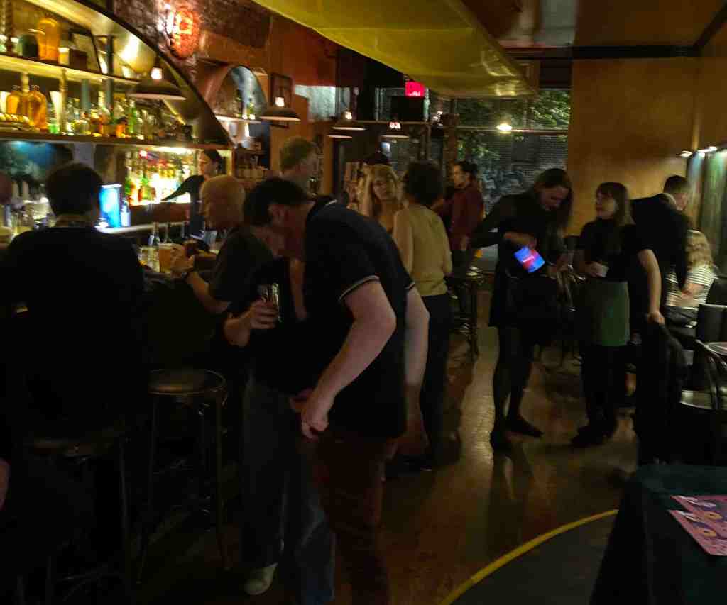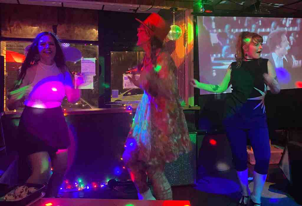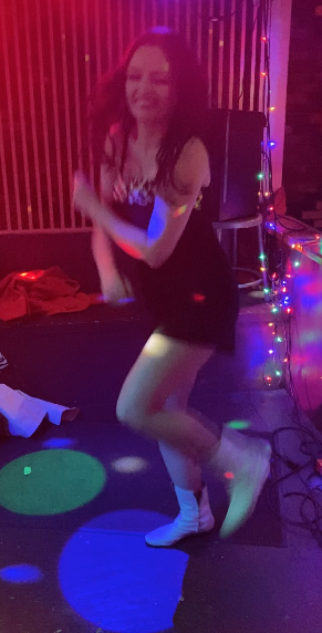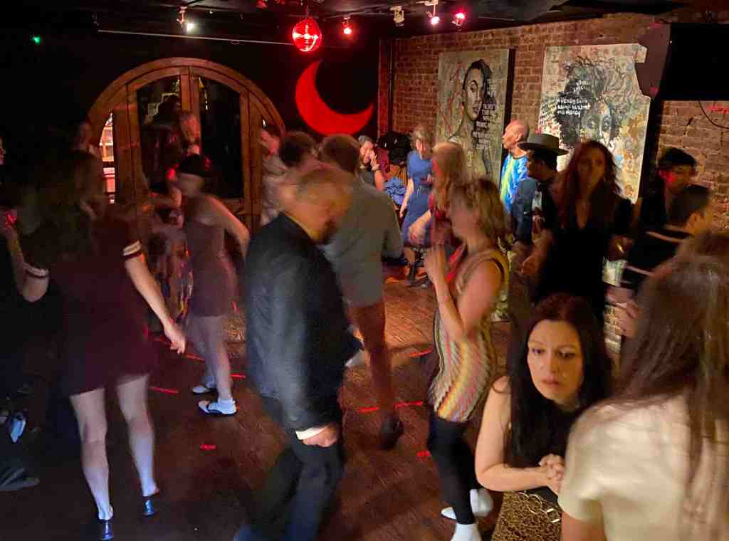 Bella Bombora and Sheba Shake go-go danced, which induced many of Quinn’s elegant clientele to join them on the raised dance floor.