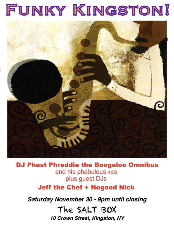 The Shim Sham Shimmy at the Salt Box in Kingston is the newest addition to the Pete Pop DJ hustle. It is supposed to take place on the first Saturday of the month—but for two months it has been on the second, due to conflicting DJ schedules. Mr. Pop is a very busy man. In December it was the Benny Trokan show at Tubby’s. So for this month the event was held on the 14th, the day after Do The 45 in Beacon—another wild weekend!