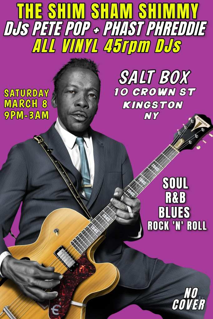 Shim Sham Shimmy Number Seven took place on March 8 at the fabulous Salt Box in Kingston. Host Pete Pop decided to experiment by setting up the DJ booth in the small room downstairs instead of the usual Rumpus Room upstairs at the historic stone building. It was fun, but perhaps too intimate, as only a handful of people could fit in the room at any one time. Luckily, the sound system goes throughout the entire club—including the bar, the Rumpus Room and a larger room in the back—folks say it sounds best in the bathrooms! When the weather gets better, there’s a lovely patio that will receive the boss sounds, too.