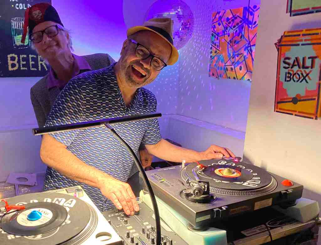 On June 7th, The Shim Sham Shimmy rolled into the Salt Box in Kingston on time—the first Saturday of the month. Hosted by DJ Pete Pop and eternal guest DJ Phast Phreddie the Boogaloo Omnibus, it was a gas! These two cats played cat music, bop music, hot rock’n’roll, jumpin’ blues and all sorts of reet jams that go WHAM! in the night!!!