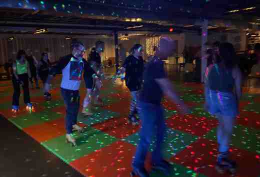 A rent-a-roller skate company (from Rochester, if memory serves) was enlisted to make sure that all comers had the proper footwear for the night and they put down an appropriate floor for the roller folk, and thus, a successful event took place.
