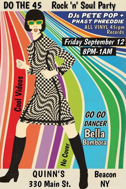 October held another Wild Weekend: Do The 45 was held on Friday the 10th and the Shim Sham Shimmy took place the next evening—the 11th. The Salt Box had rented out the upstairs Rumpus Room, where the Shimmy usually takes place, to a wedding party of some sort, so Pete Pop and Phast Phreddie the Boogaloo Omnibus set up their DJ equipment downstairs in what is known as the Brown Room. We call it the Dog Room because hanging on its walls are several velvet paintings of dogs. The Dog Room is a little more cramped, but hey, we’re all friends here.