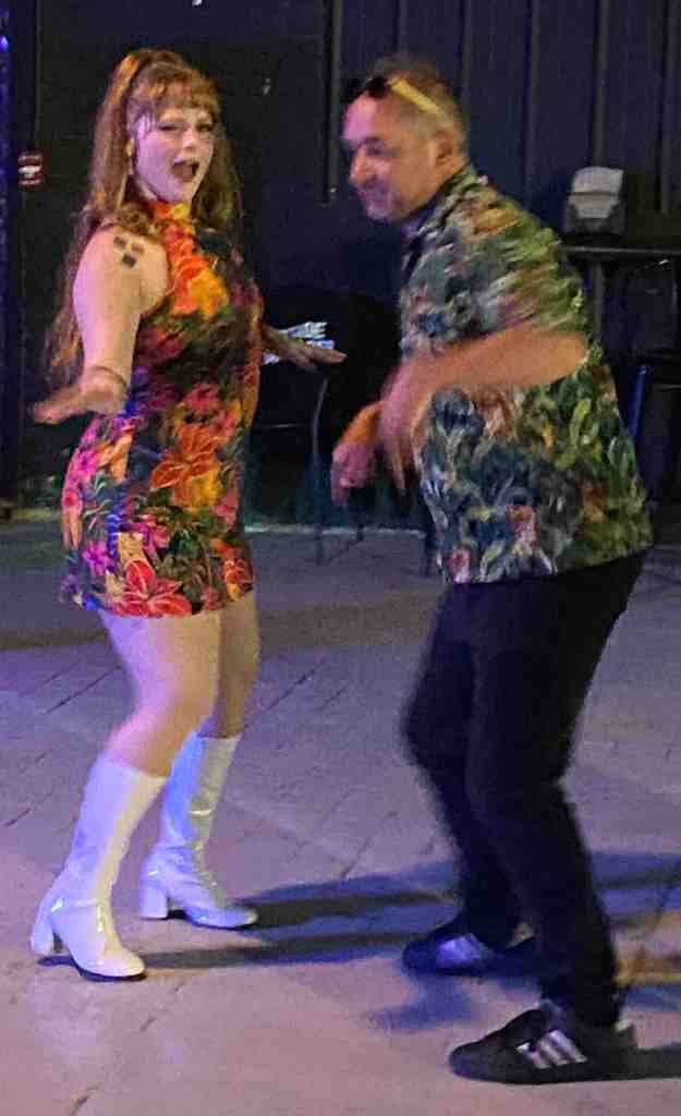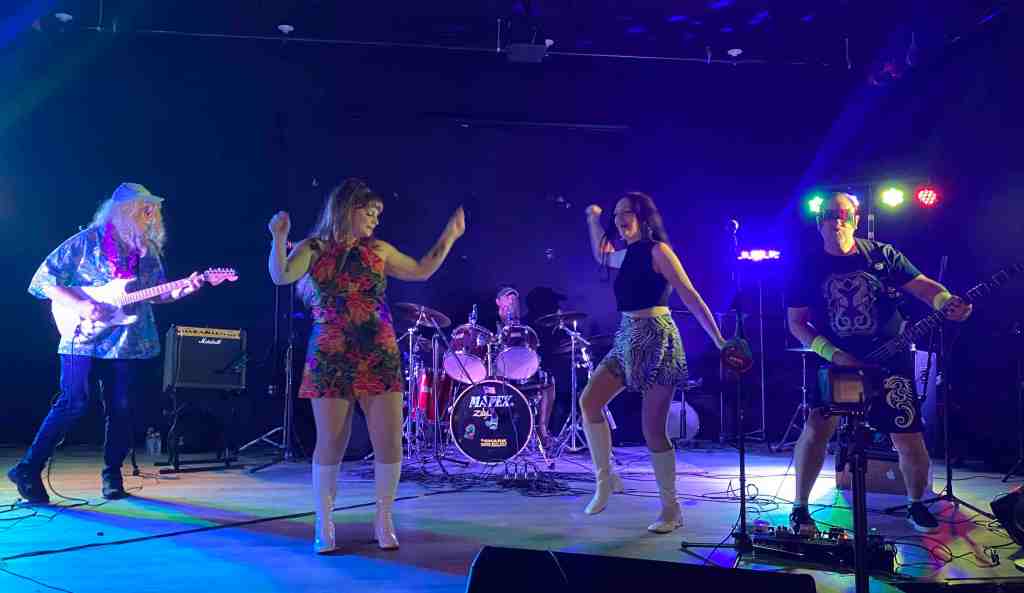 The bands that played were Downward Donkey, The Time Surfers and The VaVa Voodoos. Downward Donkey is a power trio—loud and rockin’! The Time Surfers are an excellent surf music-influenced instrumental band that features the artistic gyrations of Go-Go dancer Bella Bombora. At one point, Miss Bombora was joined on stage by local Go-Go dancer Sheba Shake. The Va Va Voodoos are an interesting alternative-punk band heavily influenced by The Cramps and The Velvet Underground. We may need to see this group again.