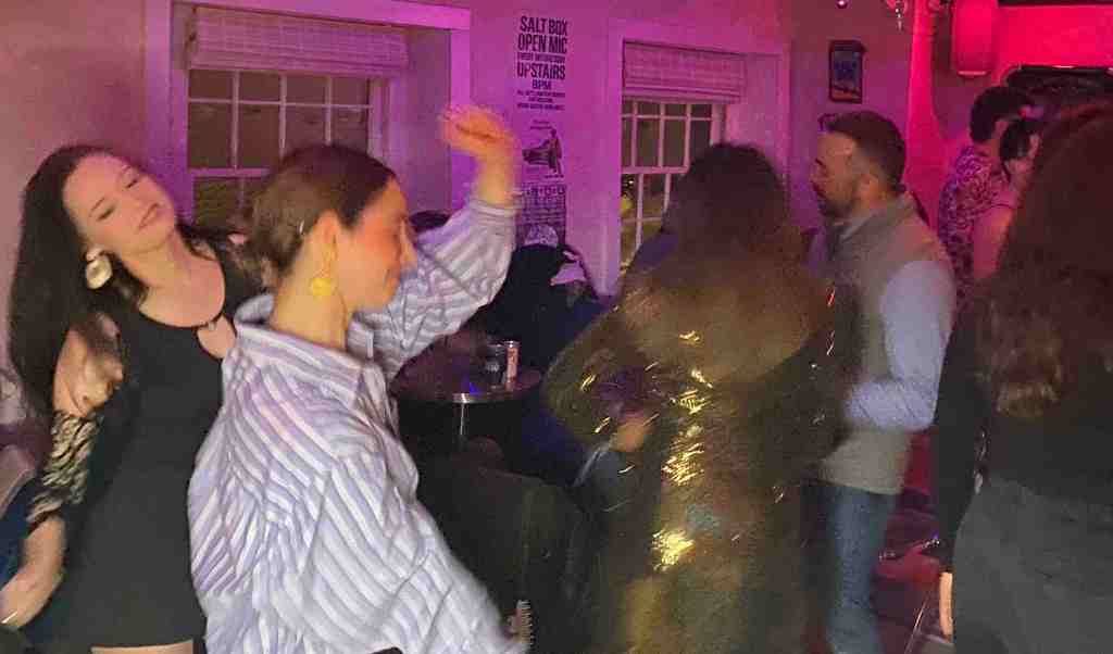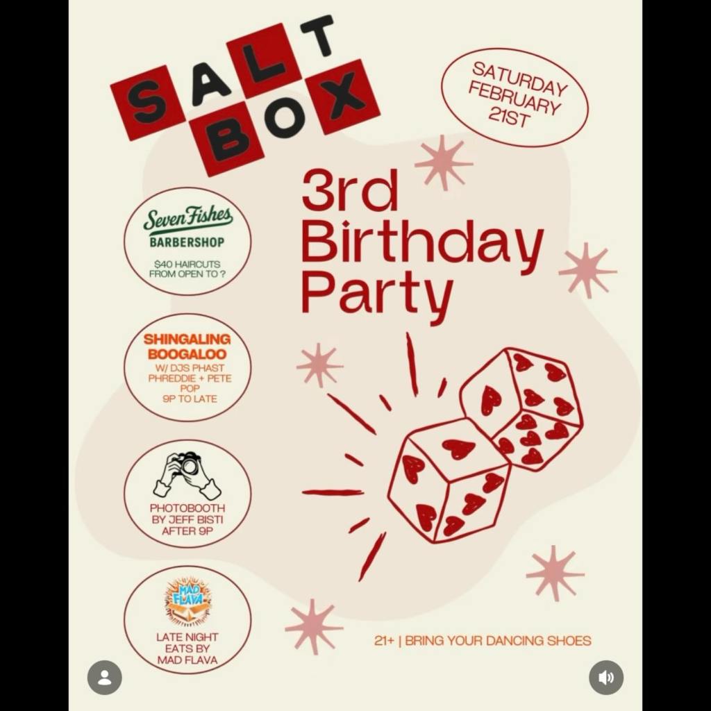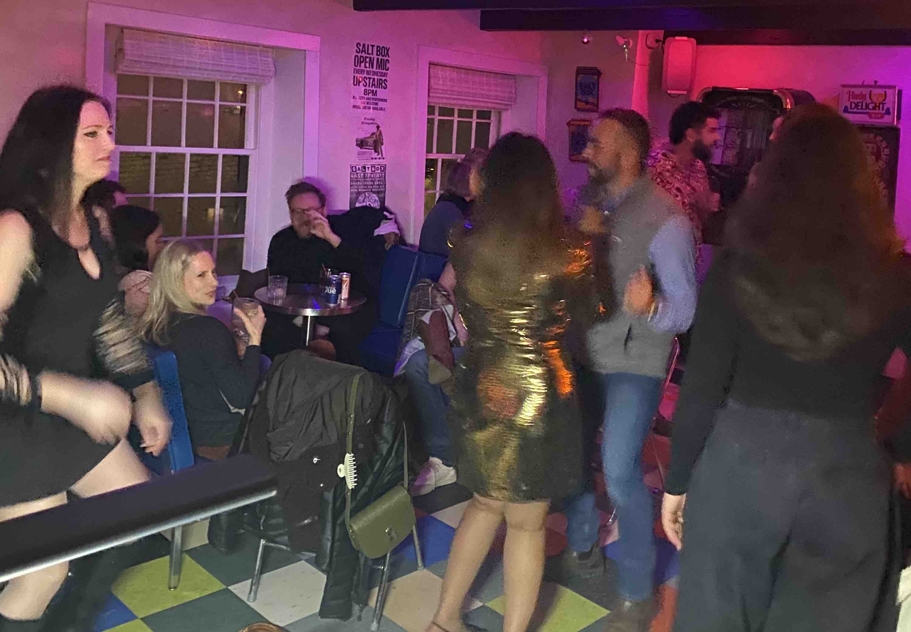 This very first ¡Shingaling Boogaloo! took place on a night when the Salt Box was also celebrating three years of existence—so the atmosphere was more party-like than usual, with all sorts of folks boppin’ around all night long… tons of crazy people!!! The night was incredibly successful.