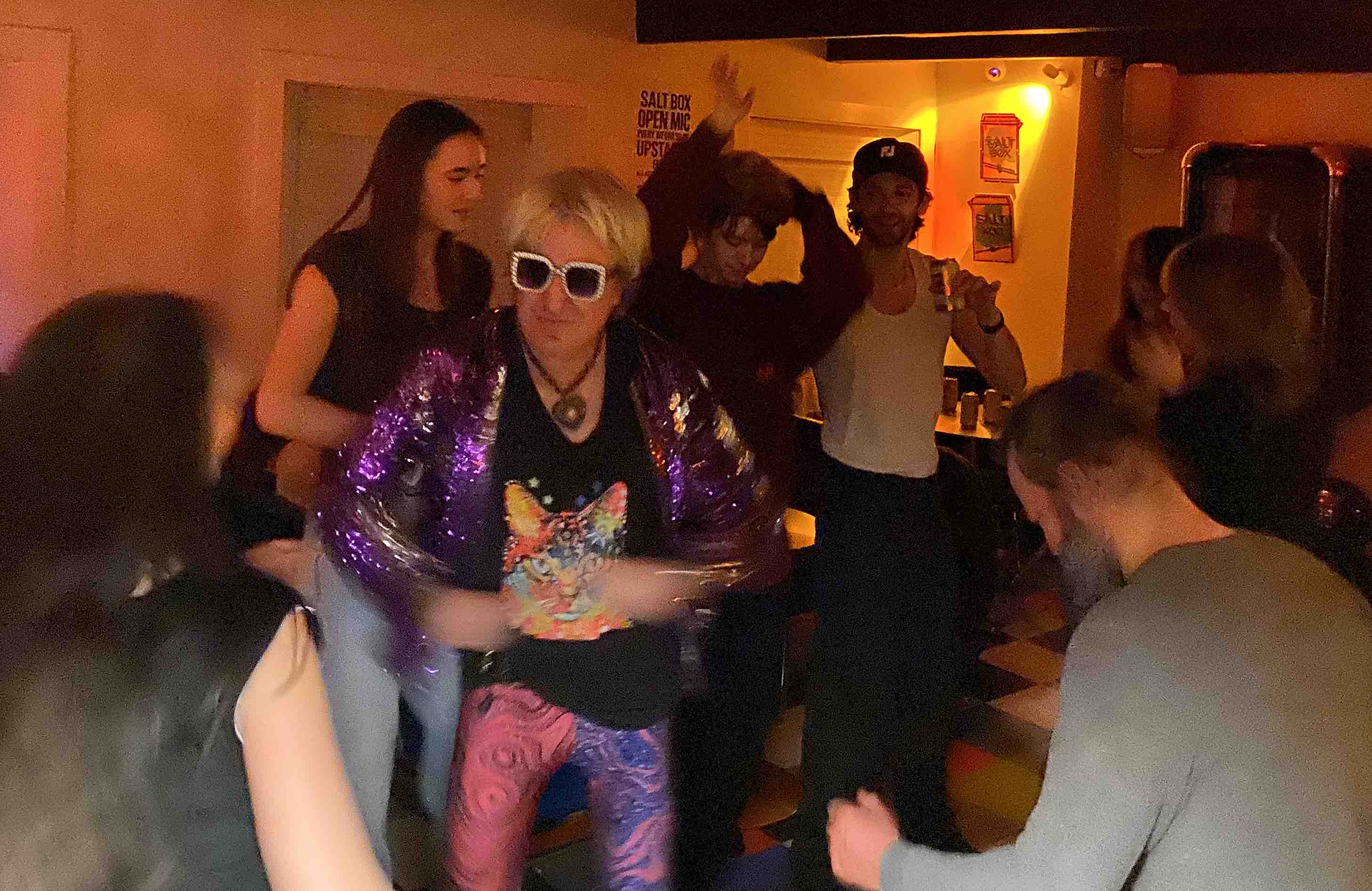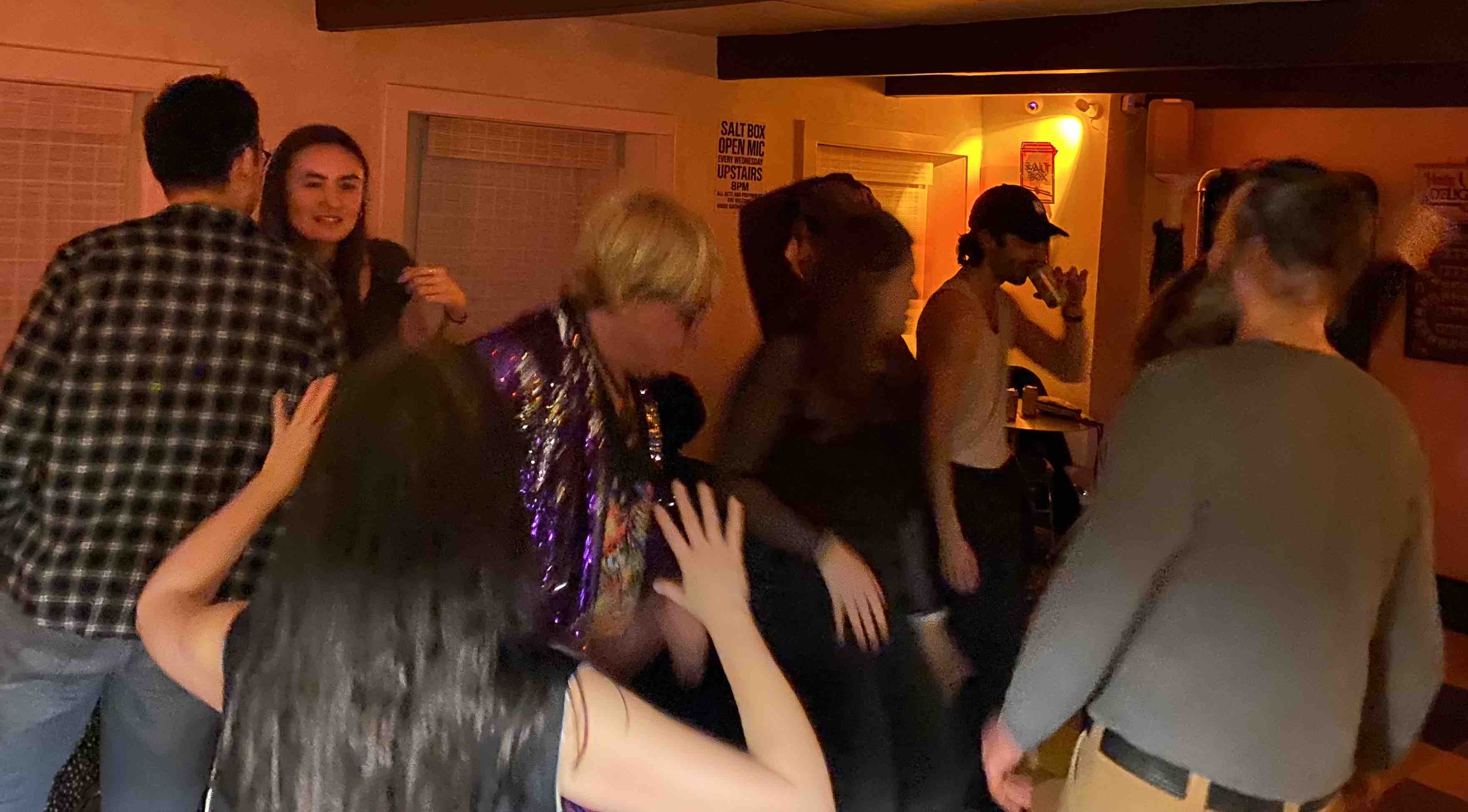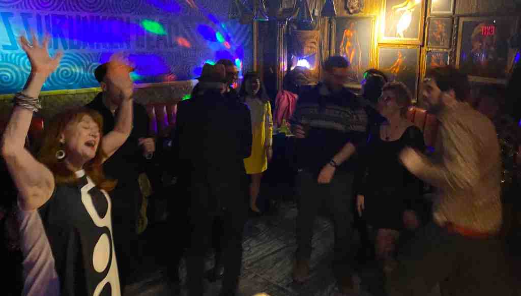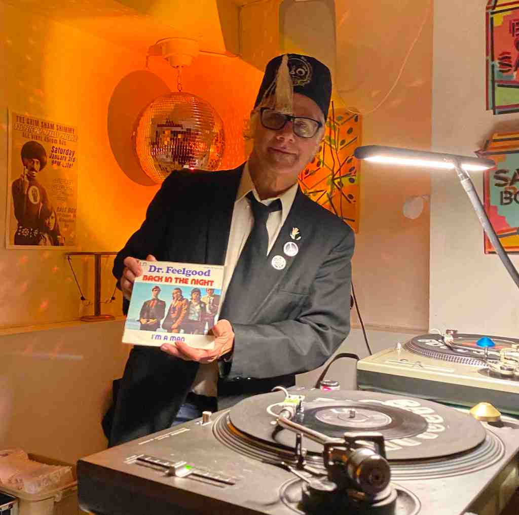 So on January 17, Pete Pop and Phast Phreddie the Boogaloo Omnibus dragged their records up the stairs to the Rumpus Room at the Salt Box and played their New Wave records. We do mean ‘dragged!’ Pete Pop and Phast both decided that it was copacetic to play LPs, however Phast only brought about eight and Pete brought eight crates!!! The event was called Wig Wam Bam and it was an exciting night of rockin’ trash from mostly the seventies. The place jumped from around 8:30 or so until they kicked everyone out around 3:00 AM. Folks were boppin’ all night. Miss Nancy supplied brownies and chex mix. Attendees supplied foot stomps, hand claps and ‘yippeees!’