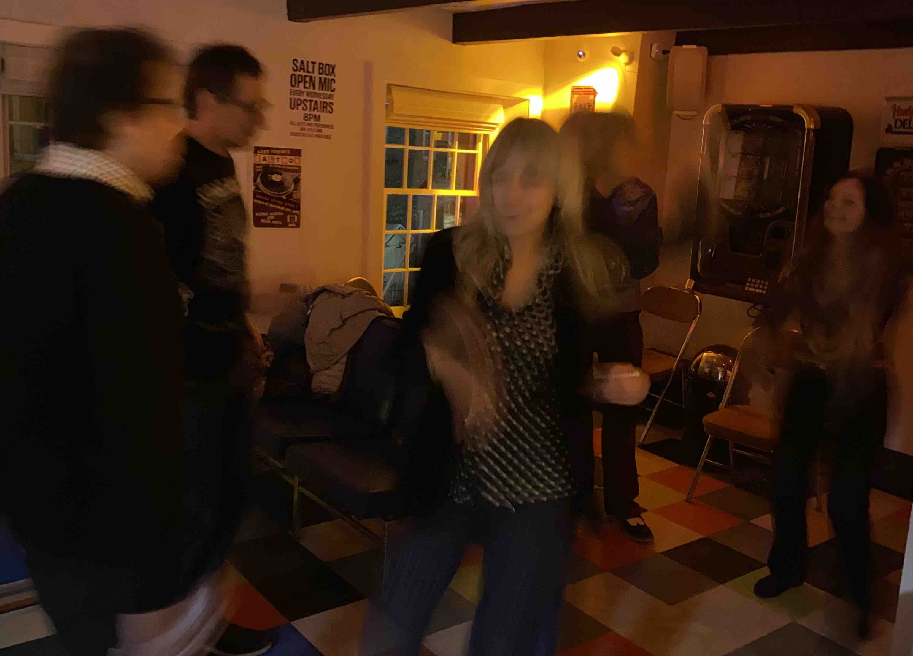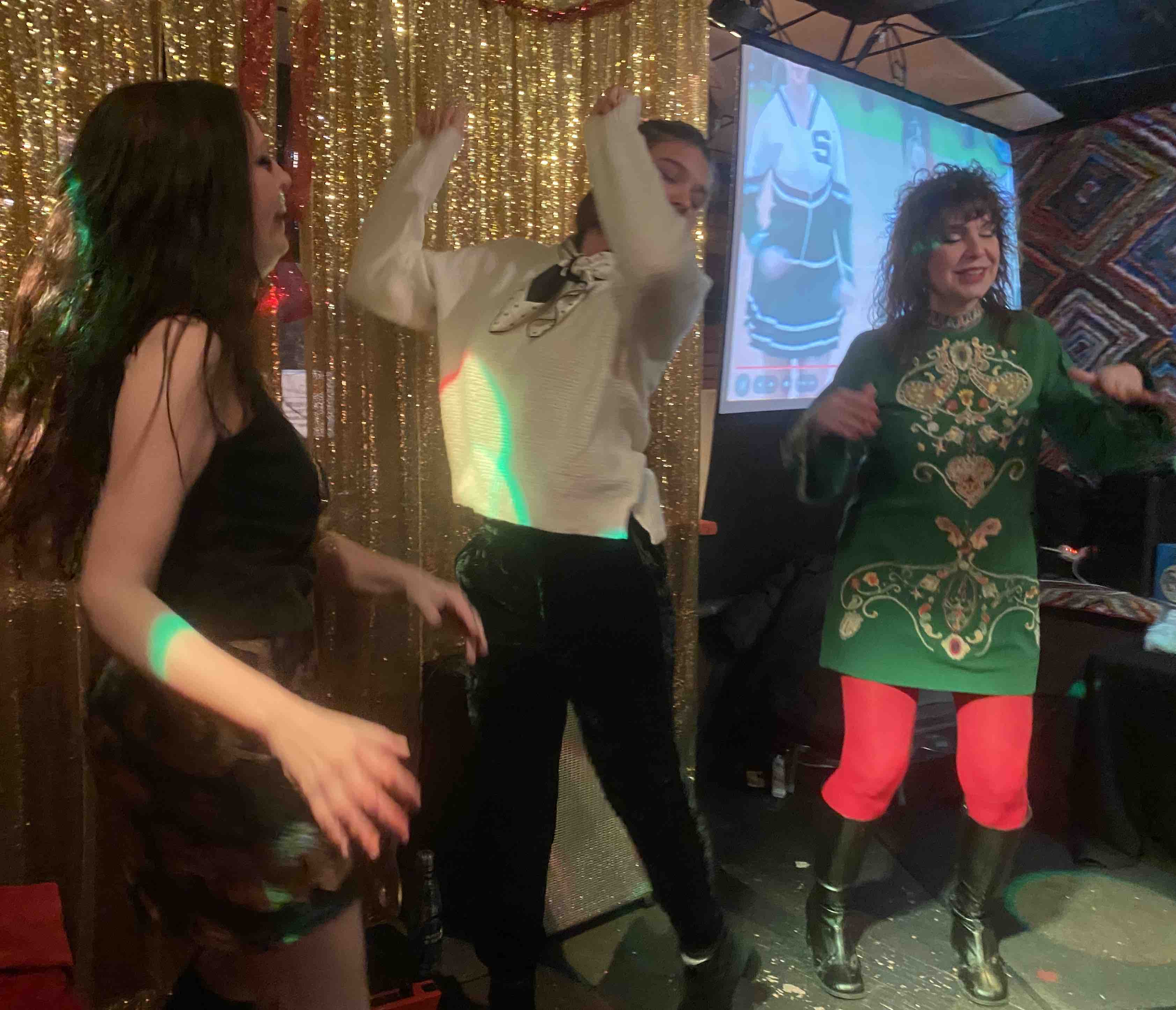 Meanwhile, Pop and Phast, wearing Santa hats, played their usual trash. Go-Go dancer Bella Bombora gyrated in an artistic manner and was often joined on the raised dance floor by folks mesmerized by the music. Quinn’s was packed with partyin’ patrons who bopped around to the wild beats.