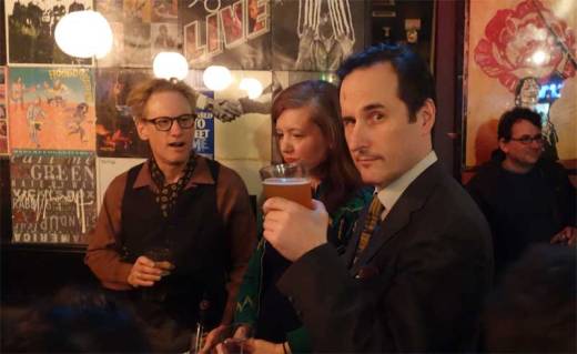 On Sunday March 26, the BIG TEN INCH held it’s regularly scheduled meeting of shellac enthusiasts at the Hi-Fi Bar in Manhattan. Counting host Phast Phreddie the Boogaloo Omnibus, 13 men came with boxes of 78s to play: Adam Lore, Alex De Laszlo, Andy Upsetter, Bob Pomeroy, John Clemente, Justin CollectorScum, Michael McMahon, DJ Rata, Rich Sibello, Ted Baron and Tony Salvaje. Let’s not forget Juke Joint Jonny, who celebrated his birthday!