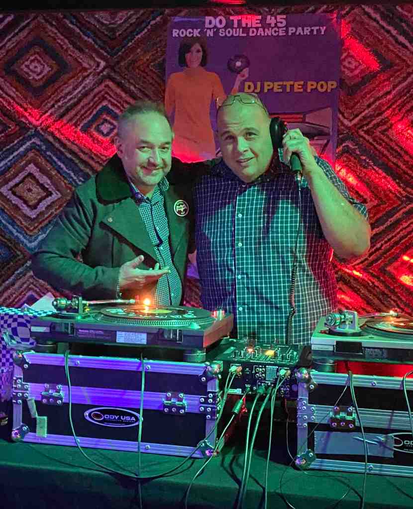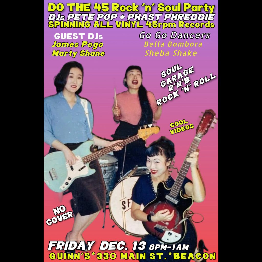 It may have been Friday the thirteenth, but Do The 45 held on that date was anything but unlucky. In fact, it may have been one of the best ones yet! All night folks were boppin’ to the boss sounds laid down by host DJ Pete Pop, his co-host Phast Phreddie the Boogaloo Omnibus and their guests Marty Shane and James Pogo. Go-Go dancer Bella Bombora performed so enthusiastically that dozens of folks got up on the raised dance floor to boogie with her throughout the night. In all, it was quite a success.